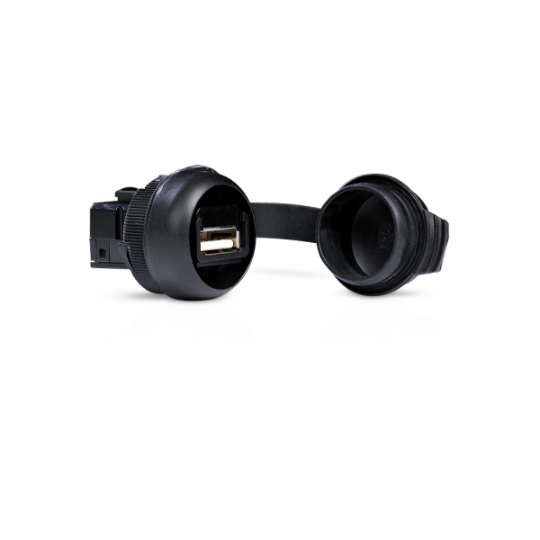 This plug grants access to the controller’s USB communications port. To connect the port to the plug, connecting cable 0810500018 or 0810500020 must be used (to be ordered separately).