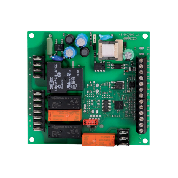 The module is equipped with 4 electromechanical relay outputs.